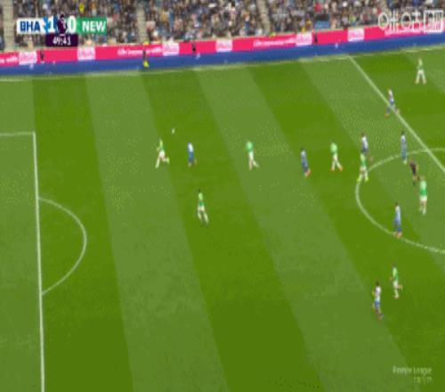 第41分钟,维尔贝克单刀挑射破门,布莱顿1-0纽卡