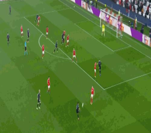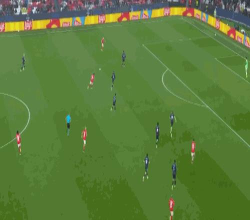 第58分钟皇马缩小分差,居莱尔右路倒三角传中,姆巴佩中路推射建功,上演梅开二度,将比分追至1-2,接下来时间,银河战舰虽然大举压上反扑,却没有能够再次攻破本菲卡的球门,伤停补时阶段,本菲卡门将特鲁宾头球建功,帮助本菲卡将比分定格为了4-2。